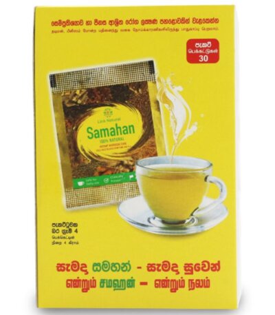 රු2,160.00Link Samahan (30 packets) is a 100% natural, authentic Sri Lankan Ayurvedic herbal tea designed to relieve cold and catarrh symptoms, such as sneezing, runny nose, and throat discomfort. Each 4g sachet contains 14 herbal ingredients, offering a convenient, instant remedy for immune boosting.