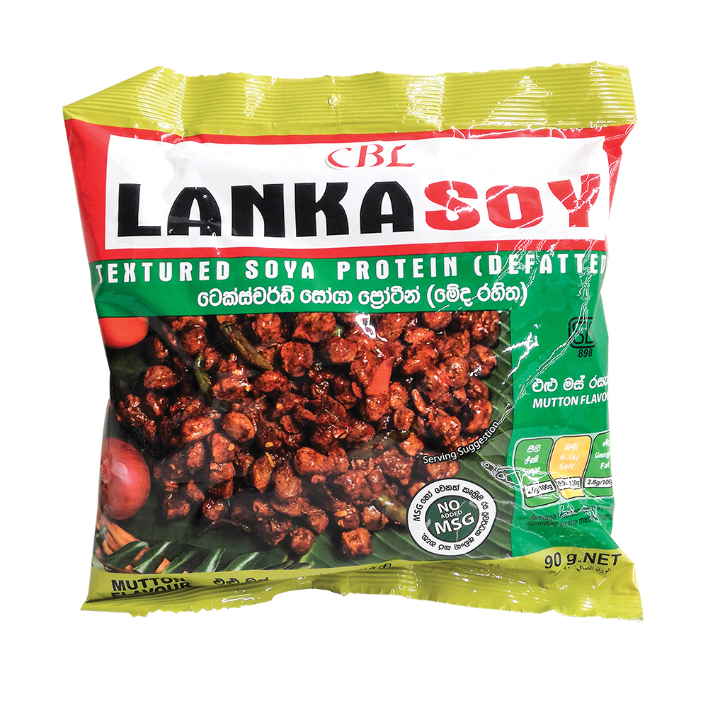 - The Lanka Soy Soya Meat Mutton 90g (often labelled as Lanka Soy Mutton Flavour 90g) is a popular Sri Lankan plant-based protein product made from textured soy protein and enhanced with a savory mutton-style seasoning. It is a high-protein, low-fat, and vegetarian-friendly meat alternative, offering a rich and spiced taste in a convenient 90g pack for quick meal preparation.