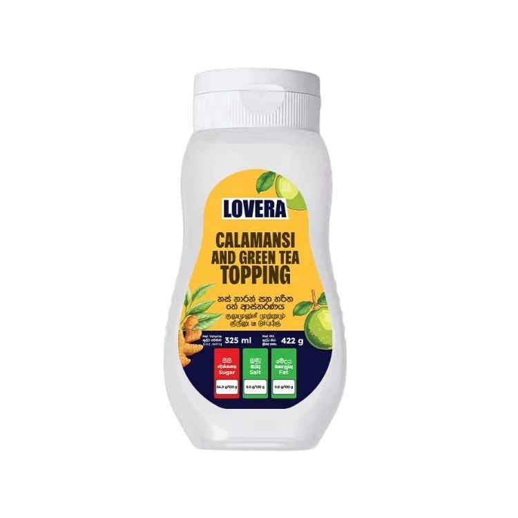 Lovera Calamansi & Green Tea Topping 325ml offers a refreshing blend of zesty calamansi and smooth green tea flavor. Perfect for adding a unique twist to ice cream, drinks, yogurt or desserts. It brings a balance of citrusy freshness and gentle sweetness to every bite.