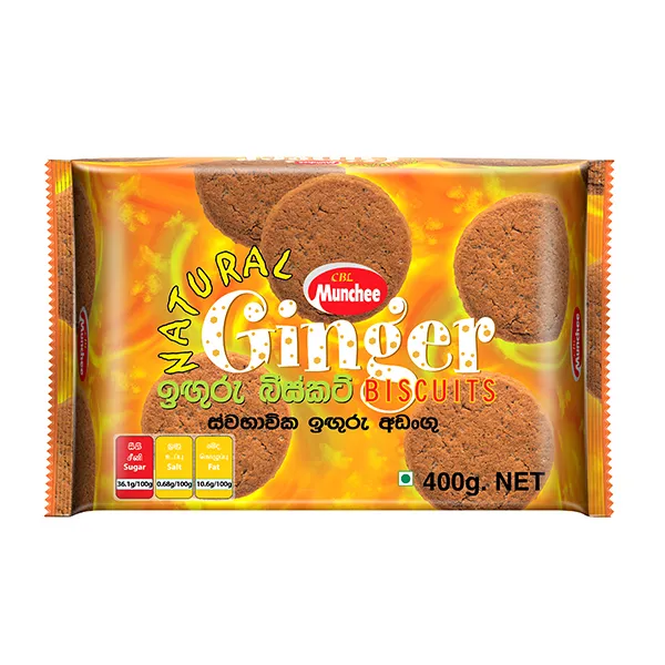 The Munchee Ginger Biscuit 400g is a pack of crunchy, golden biscuits infused with natural ginger powder, known for their unique balance of spice and sweetness.