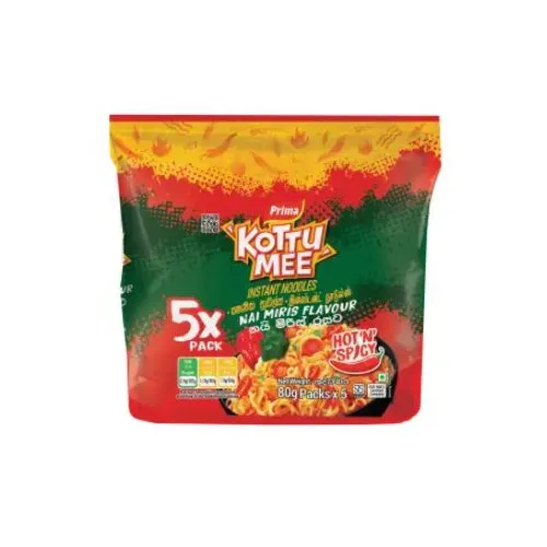 Prima Kottu Mee Nai Miris 5S 400g is a multi-pack of instant noodles known for its intense, fiery flavor inspired by traditional Sri Lankan street food. The name “Nai Miris” translates to “cobra chili” or bird’s eye chili, referring to the potent ingredient that delivers a bold, zesty, and ultra-spicy kick.
