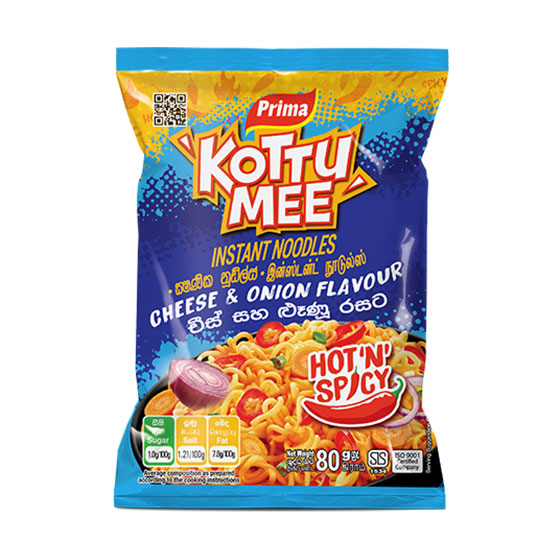 Prima Kottu Mee Noodles Cheese & Onion 80g is an 80-gram pack of instant noodles that provides a delightful blend of creamy richness of cheese and the savory tang of onion.