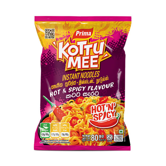 Prima Kottu Mee Noodles Hot & Spicy 80g is a popular instant noodle product from Sri Lanka known for its authentic and intense hot and spicy flavor.