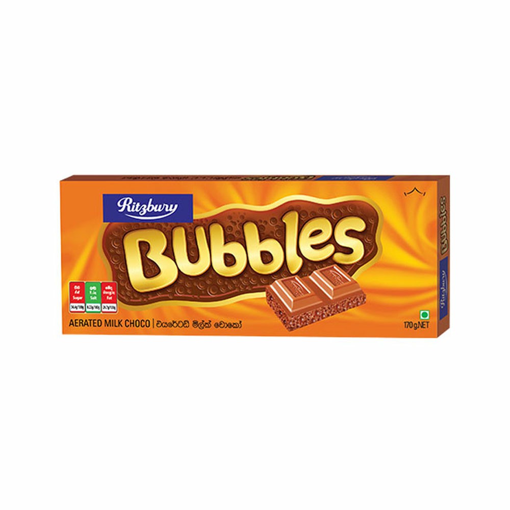 The Ritzbury Bubbles Chocolate 170g is an aerated milk chocolate bar known for its light and airy texture.