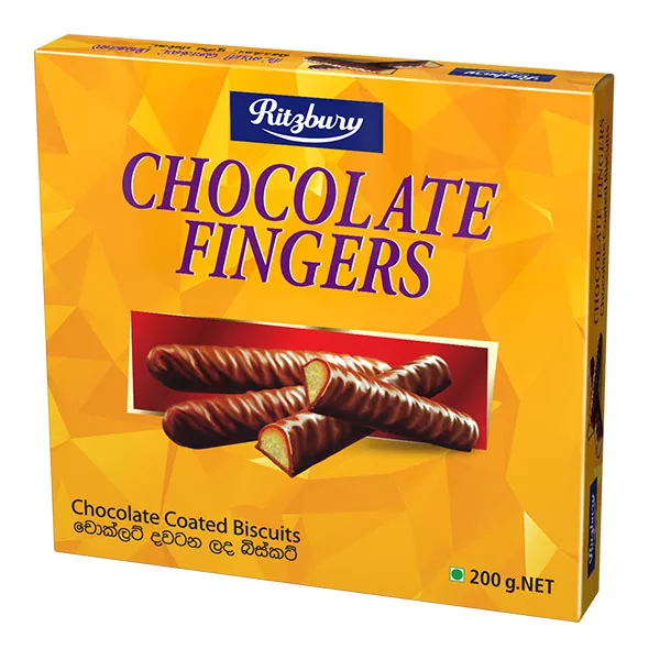 The Ritzbury Chocolate Fingers 200g is a pack of chocolate-coated, finger-shaped crispy biscuits available for purchase from various online merchants primarily in Sri Lanka. The product is known for its quality and taste, winning over “choco lover’s delight”.